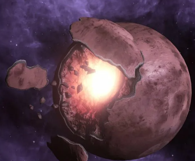 Осколки луны вращаются вокруг неё и со временем падают на неё. Один такой момент даже смог пронаблюдать Ларс, когда небольших размеров осколок луны рухнул на неё.